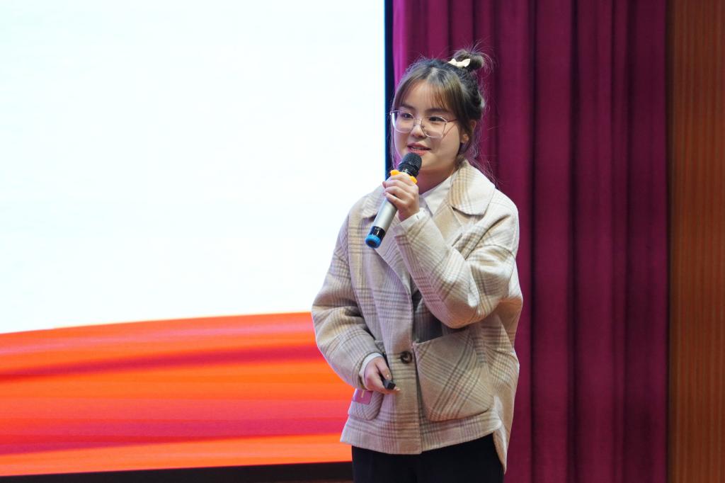 接着,刘诗妍分享了她对党史学习的感悟。她表示,我们在历史的新起点上重学党史,就是为了从中领悟思想、汲取力量、增强勇气与坚定信仰。中华民族千秋伟业,百年只是序章,百年正是风华正茂。最后,刘诗妍借用习总书记的寄语“对历史最好的致敬,就是书写新的历史”与同学们共勉。