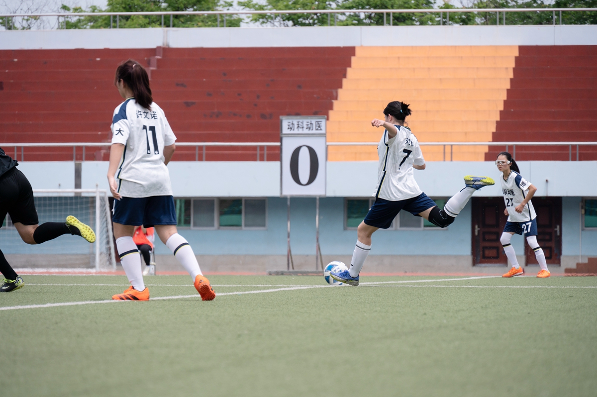 第63分钟,动科动医学院7号刘倩左侧小角度起脚打门(通讯员 侯国涛 摄)