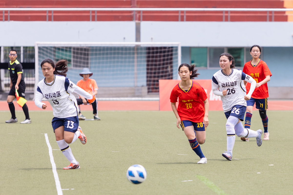 本届比赛,卫冕冠军动科动医学院女足和上届赛事亚军生科学院女足分别分在C组(小组共3支球队)和B组(小组共4支球队)。小组赛阶段,动科动医学院女足以两战全胜,进10球不失一球的骄人战绩头名出线,生科学院女足同样强势,以三战全胜战绩小组第一晋级。1/4决赛中,动科动医学院女足先以2:0战胜经管学院女足,并在半决赛上4:1战胜A组第一的劲旅园艺林学学院女足,昂首挺进决赛;生科学院女足则是先以6:0的大胜食科学院女足,再以3:0完胜文法学院女足,杀入决赛,与动科动医学院女足时隔一年再次碰面,重演上届决赛。