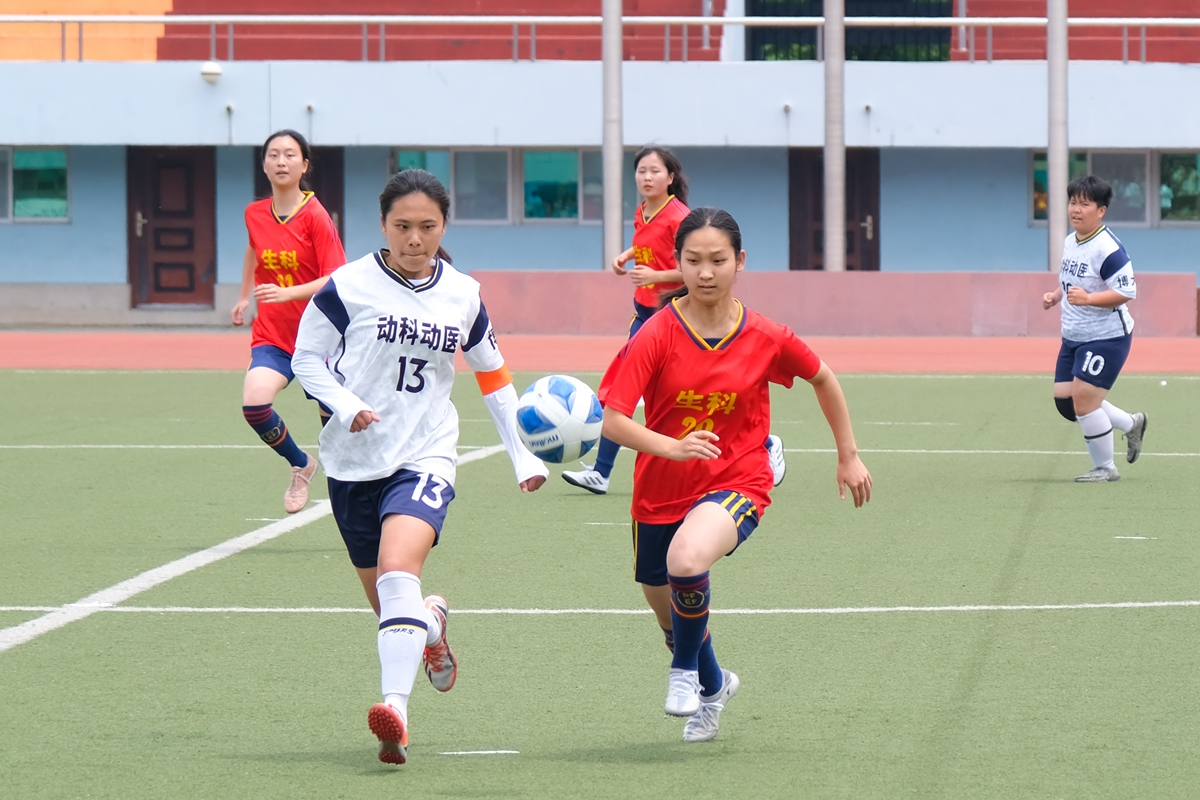 动科动医学院13号刘桂楠与生科学院20号罗雅云激烈拼抢(通讯员 侯国涛 摄)