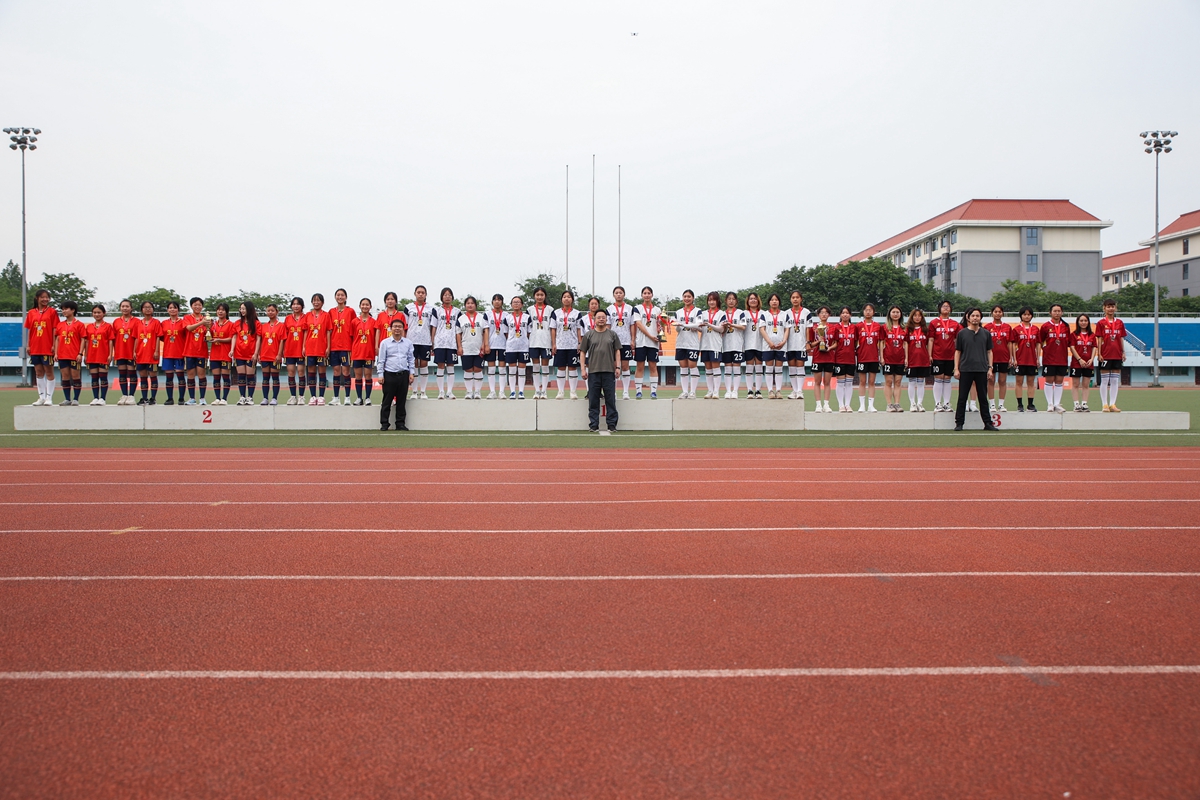 颁奖仪式上,总裁判长、体育部高原老师宣布了2023“狮子山杯”足球比赛结果。校党委常委、副校长青平,副校长严建兵,党委宣传部常务副部长吴义生,党委研究生工作部部长镇志勇,文化建设办公室主任冯楠,体育部副主任邹伟等分别为获奖团队和个人颁奖,并与获奖团队和个人合影留念。