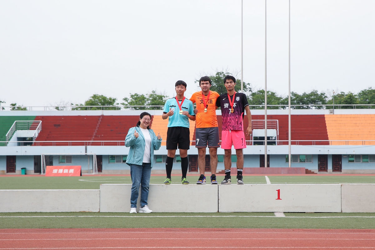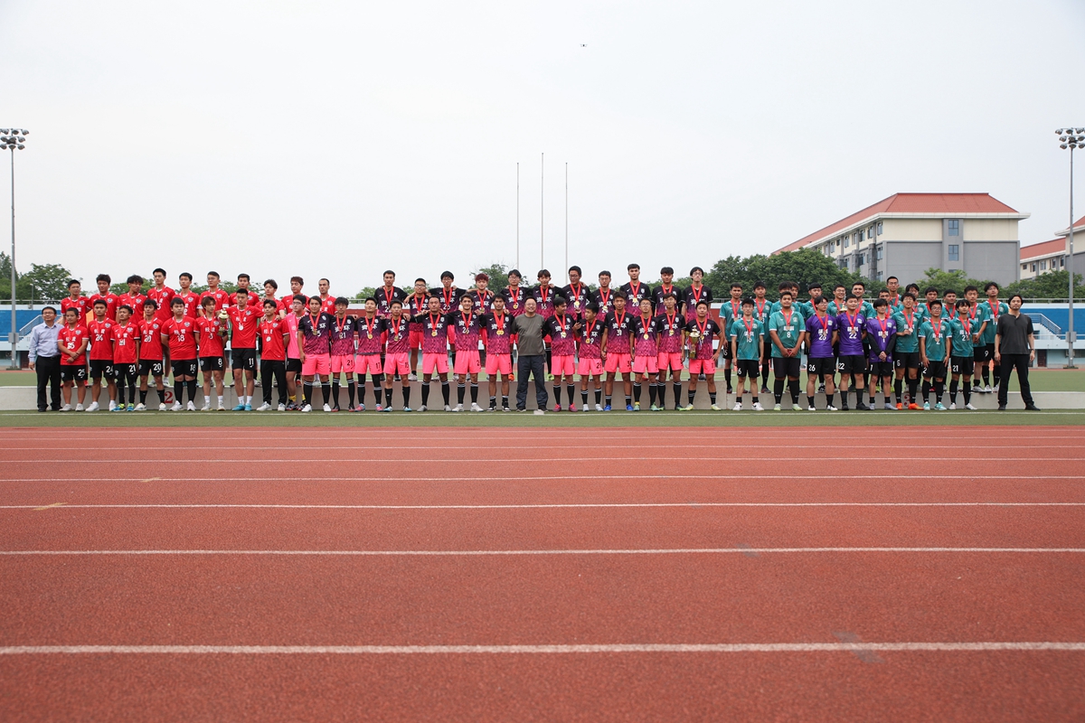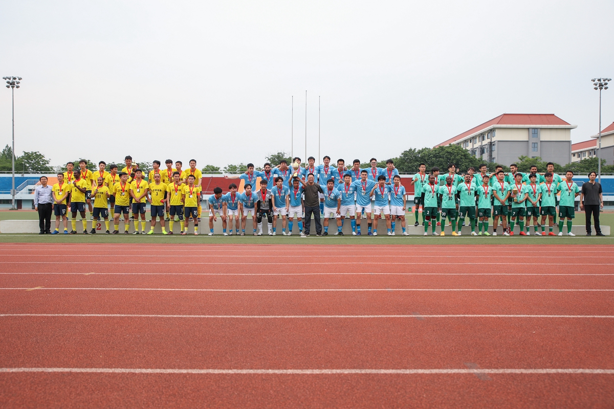 青平、严建兵等本科生男足前三名合影(学通社记者 周全 摄)
