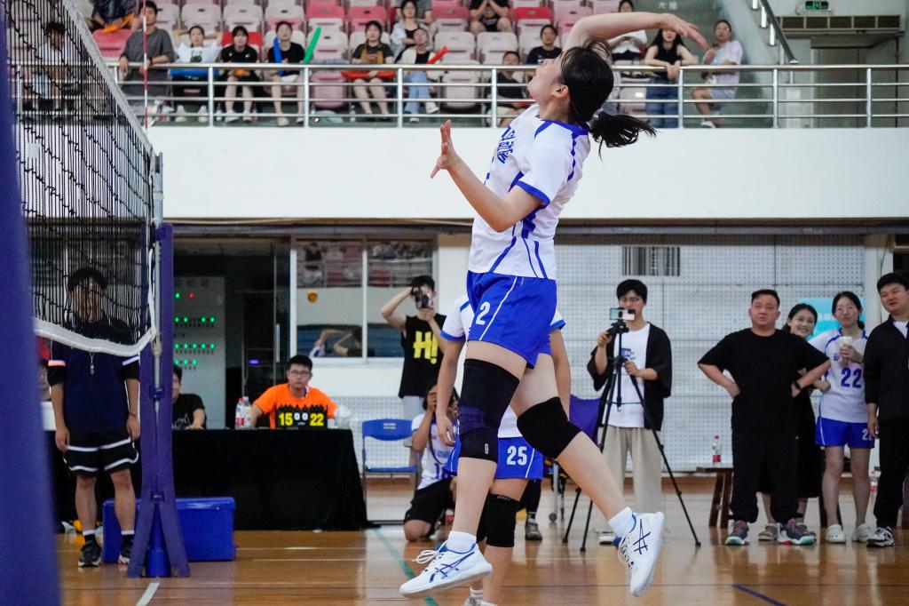下午14时整,季军争夺赛正式开始。文法学院率先拿下两分,开局不利的动科动医学院迅速调整状态,8号曾瑾精准扣球得分,拿下动科动医学院首分。延续良好状态,动科动医学院精准预判、迅猛发球、巧妙吊球,将比分拉大至13-6。开局第三十分钟,比赛进入局点,2号郭泓发球得分,动科动医学院以25-16拿下第一局。