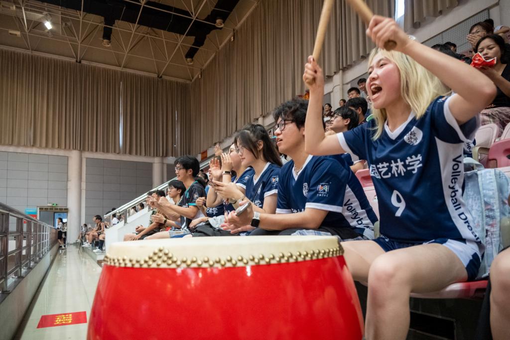 园艺林学学院啦啦队击鼓助威(学通社记者 王博炜 摄)