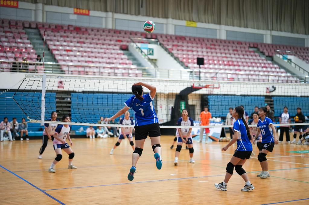 女排对阵经济管理学院女排,以2:0的战绩成功晋级四强。