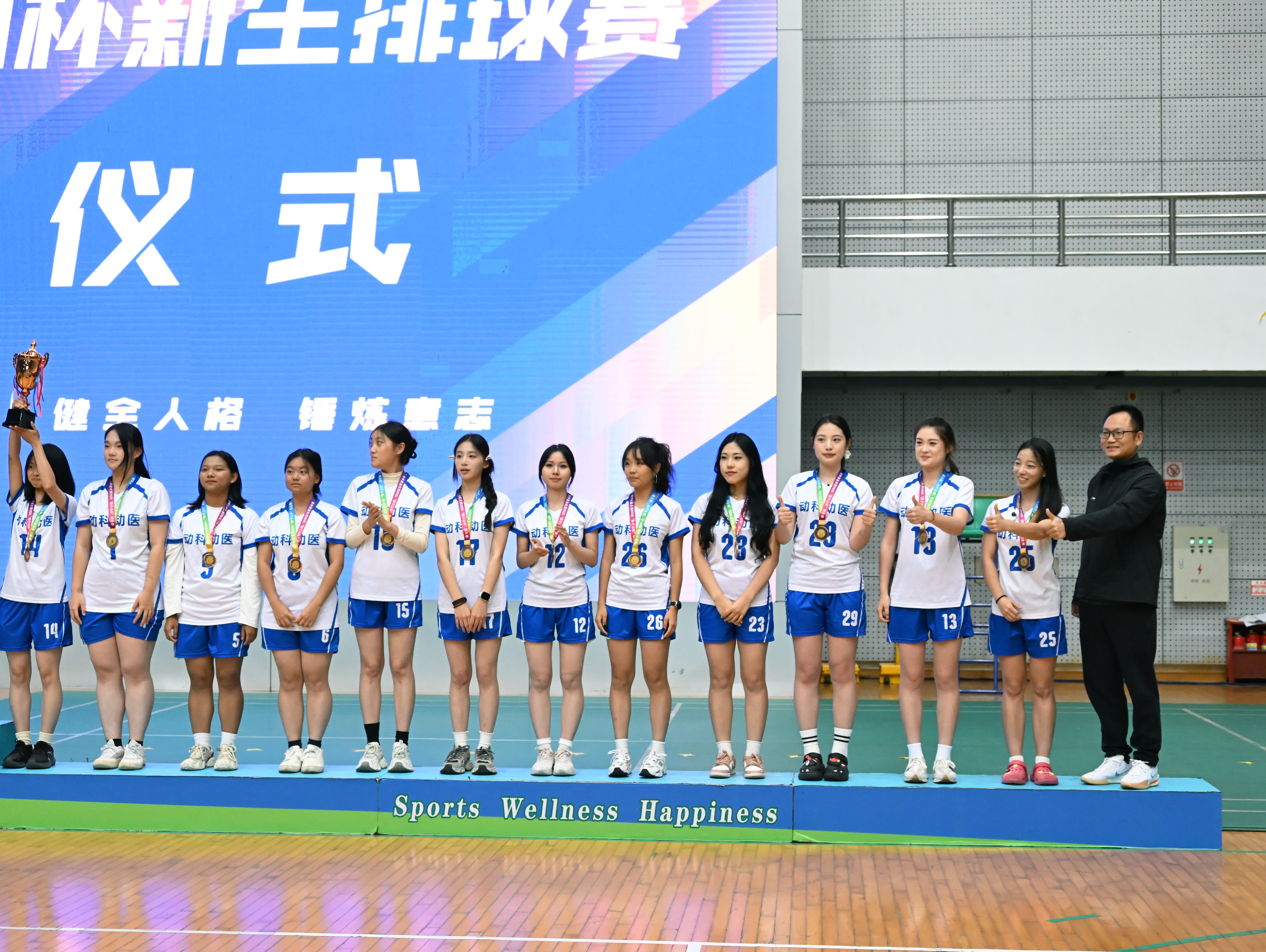 (通讯员:蒋可亭 摄影:任清竹)11月9日下午,华中农业大学“狮子山杯”新生排球女子季军赛在西体育馆进行。动科动医女排凭借稳定发挥和出色表现,以2:0的大比分战胜对手,斩获季军。