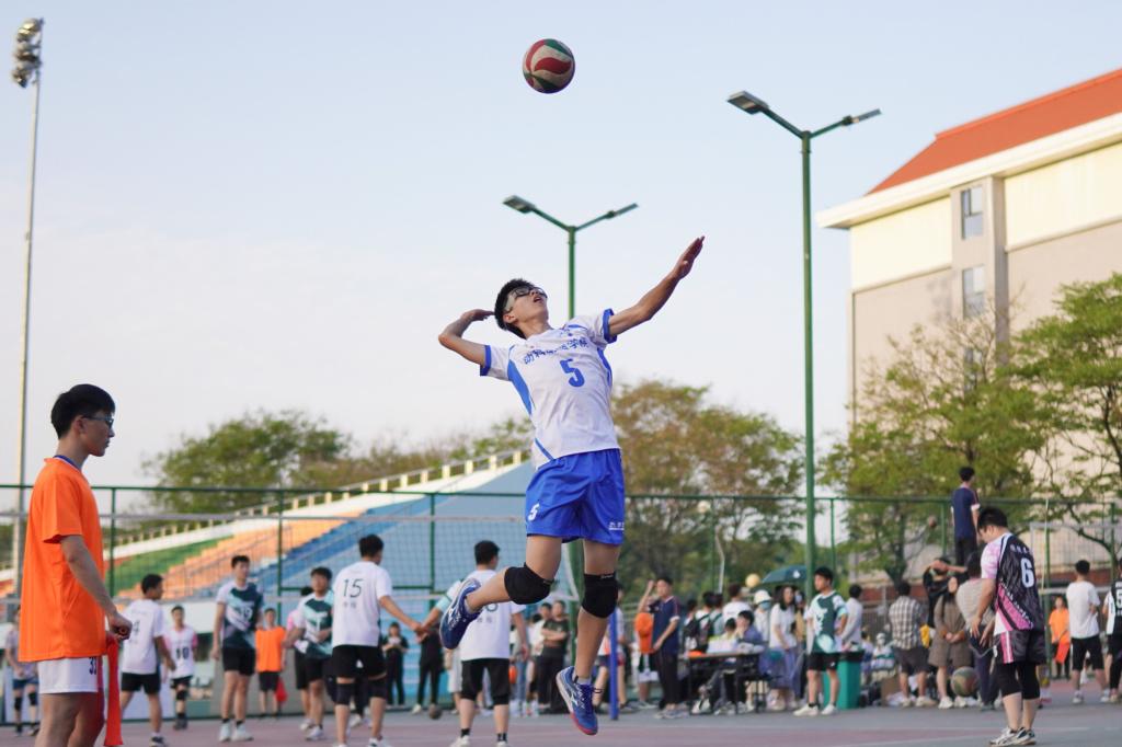 下午15时40分,揭幕战正式开始,2022“狮子山杯”男排小组赛动科动医学院首轮迎战工学院。工学院率先发球得分。开局阶段,动科动医学院由于触网、出界等原因,连续失分。5号张泽宇重扣得分,以8-1的比分打破僵局。随后,动科动医学院男排愈战愈勇,工学院触网、19号周国强扣球得分、5号张泽宇连续扣球得分……动科动医学院将比分逐渐追平。