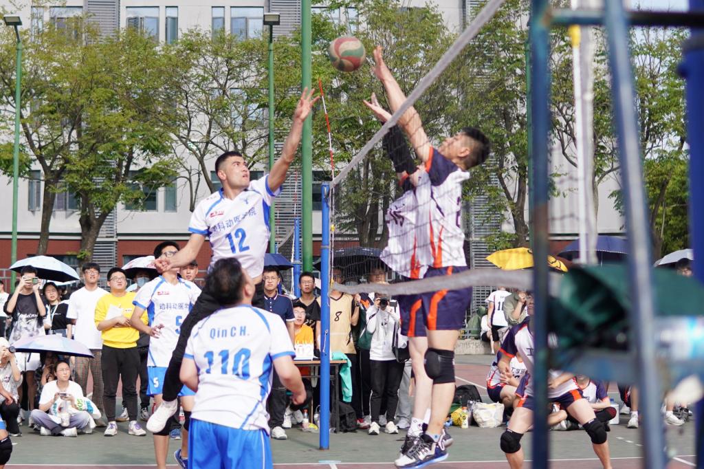 下午17时50分,“狮子山杯”男子排球小组赛第二轮,动科动医学院2-0战胜园林学院,夺得小组赛第一次胜利。