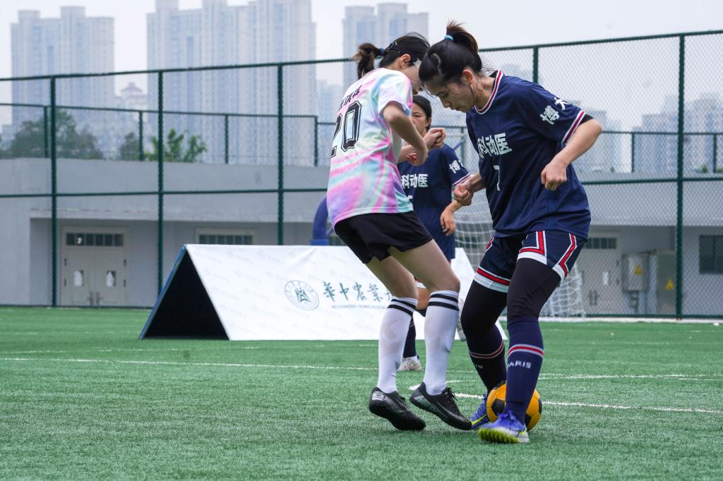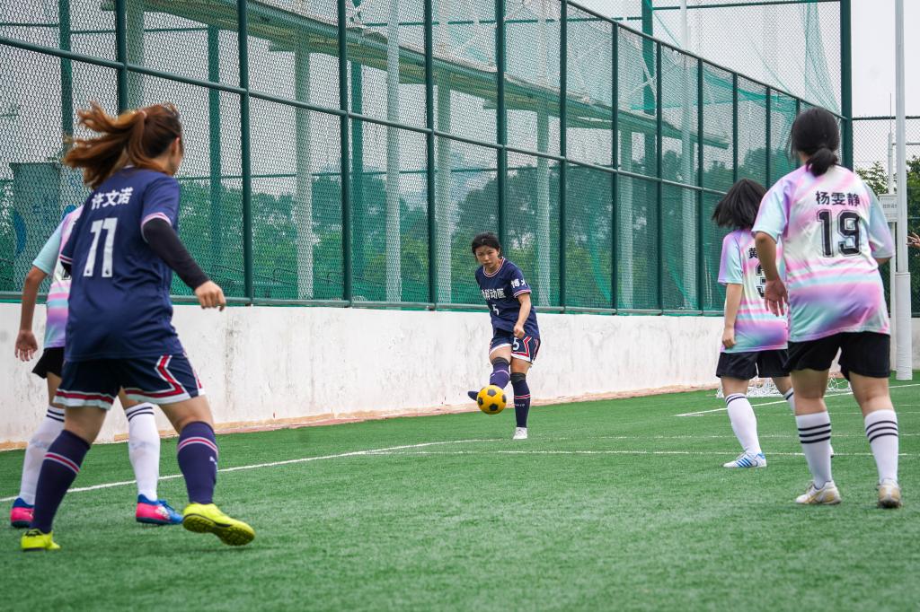 (通讯员:罗馨婷 胡万臻 摄影:杨春 杨佳渝)4月17日上午,2022“狮子山杯”足球赛女足第二比赛日的比赛在第三运动场举行。身穿深蓝色球衣的动科动医学院女足以7:1的比分战胜了身穿彩色球衣的食科学院女足,提前锁定小组第一出线。