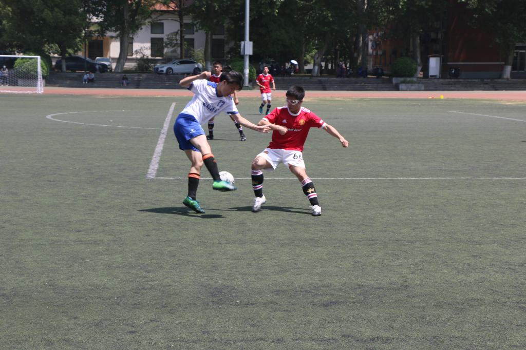 13:00整,下半场开始,双方交换半区。第56分钟时,动医动科学院队发动进攻,被经管公管联队66号张梓轩成功阻击,将球踢至动医动科学院队半场,随后动医动科学院队重新组织攻势,又被经管公管联队66号张梓轩头球成功防守。比赛来到第61分钟,节奏突然加快,竞争开始进入白热化阶段,动医动科学院队8号严子寅快速带球,直接突入后成功射门。