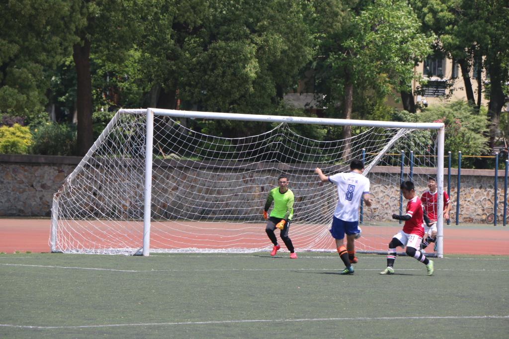 正午时分的阳光洒在球场上,比赛伊始,经管公管联队率先掌握住比赛节奏,频频攻入禁区,但遭遇动医动科学院队的顽强防守。比赛第20分钟,经管公管联队接连传球,长传几近破门,被动医动科学院队6号胡嗣祎截断。随后,动医动科学院队把握时机,开始向对方球门发起迅猛进攻,8分钟后,经管公管联队8号屠代豪造成点球,动医动科学院队10号叶尔江成功射门,先下一城。第30分钟,经管公管学院联队着手反击,打门失败。第41分钟,经管公管学院联队8号屠代豪冲破禁区,但被动医动科学院队守门员成功防守。上半场结束,动医动科学院队1:0暂时领先。